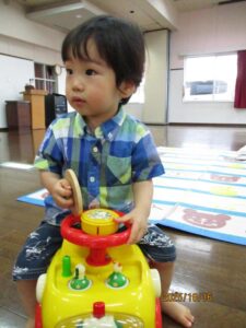 すべり台をすべったり、アンパンマンやワンワンの乗り物に乗ったりして楽しみました。