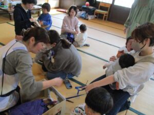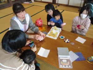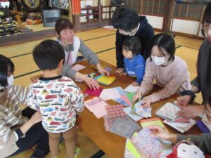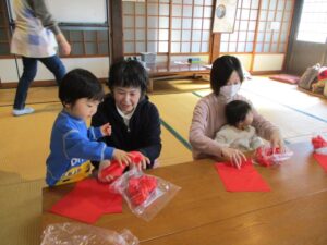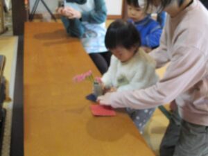 山中先生が一枚ずつおり方をレクチャーしてくれます。ママたちも一生懸命きれいに折っていきます🤗