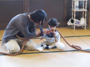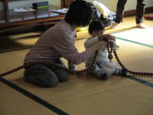 年に1回お目にかかる👀💡 大きくて長い長いお数珠をみんなで円になり回していき、今年1年の無病息災や五穀豊穣などを願います✨