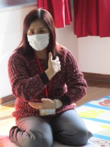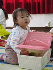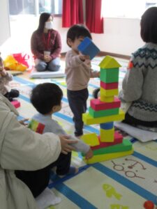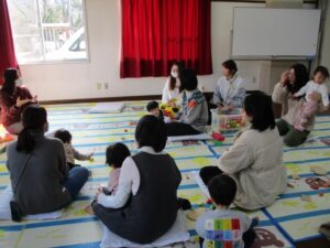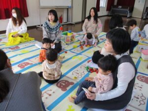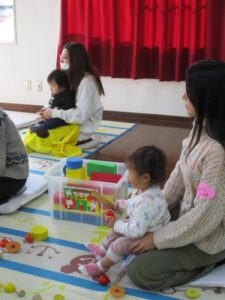 お話の間、お子さんたちはお母さんの横でおもちゃで遊んだり、絵本を読んだり、