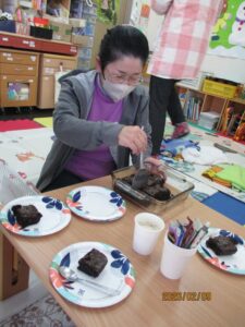 バレンタインデーが近いということもあり、ハレル先生が手作りのブラウニーを