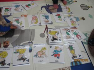ハレル先生がカードに書いてある簡単な単語を読み上げてくれます。