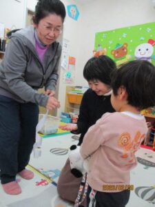 本日、福祉課の方も親子英語のようすを見にきてくれました。