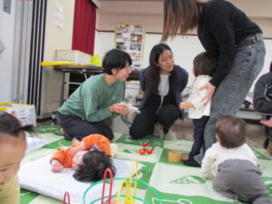 順番を待つ間は支援センターのスタッフと遊んだり、ママ同士で交流します🤗