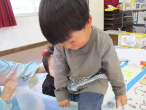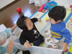 大きな衣装ボックスの中に入ってお風呂ごっこも楽しんでいましたよ🛀