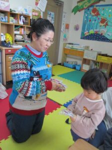 お話の間、お子さんたちはお母さんの横でおもちゃで遊んだり、絵本を読んだり、
