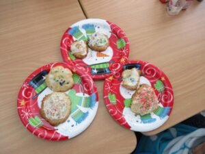 きれいな飾りの付いたクッキーを雪だるまのお皿にのせて、みんなで美味しくいただきました⛄