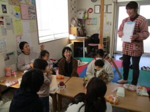 今年初めのおはなし会、4組の親子が元気に遊びに来てくれました😊