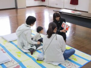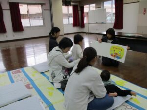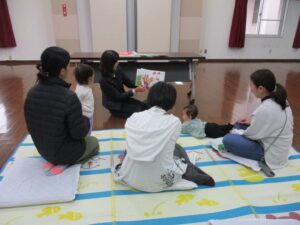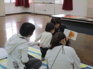 ママのお膝でじっと見つめる子、だっこで視線だけ送ってくれる子、声を出して一緒に楽しむ子など、それぞれがそれぞれの楽しみ方で絵本の世界にひたっていました。