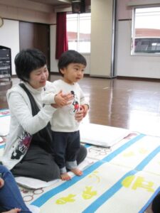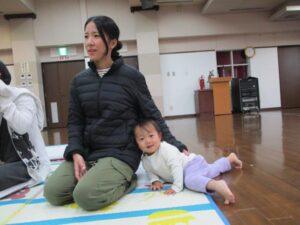 まずは一人ずつお名前をよんでお母さんと一緒に「は~い」とお返事をしてもらいます🥰