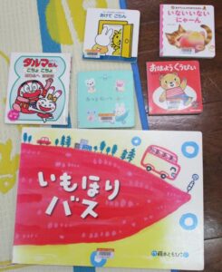 次は『バスがきました』です。うさぎやぞうなどたくさん動物が出てくるかわいい絵本でした。